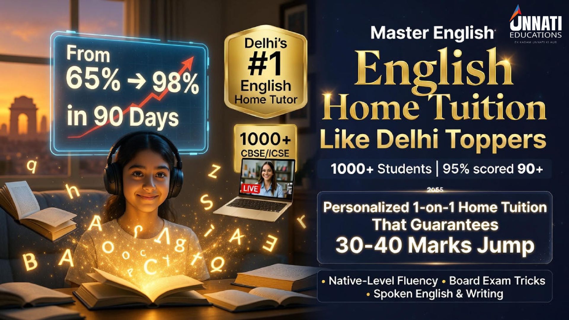Unnati Education specializes in English home tuition in Delhi. We offer classes from 1 to 12. Our first focus is on grammar, reading and writing skills, vocabulary and comprehension. We then build confidence in our students by gradually improving their communication abilities. The teaching approach we use is structured, calm and tailored to the individual. Instead of forcing our students to join fast-paced groups, we adjust the pace according to their learning style.
