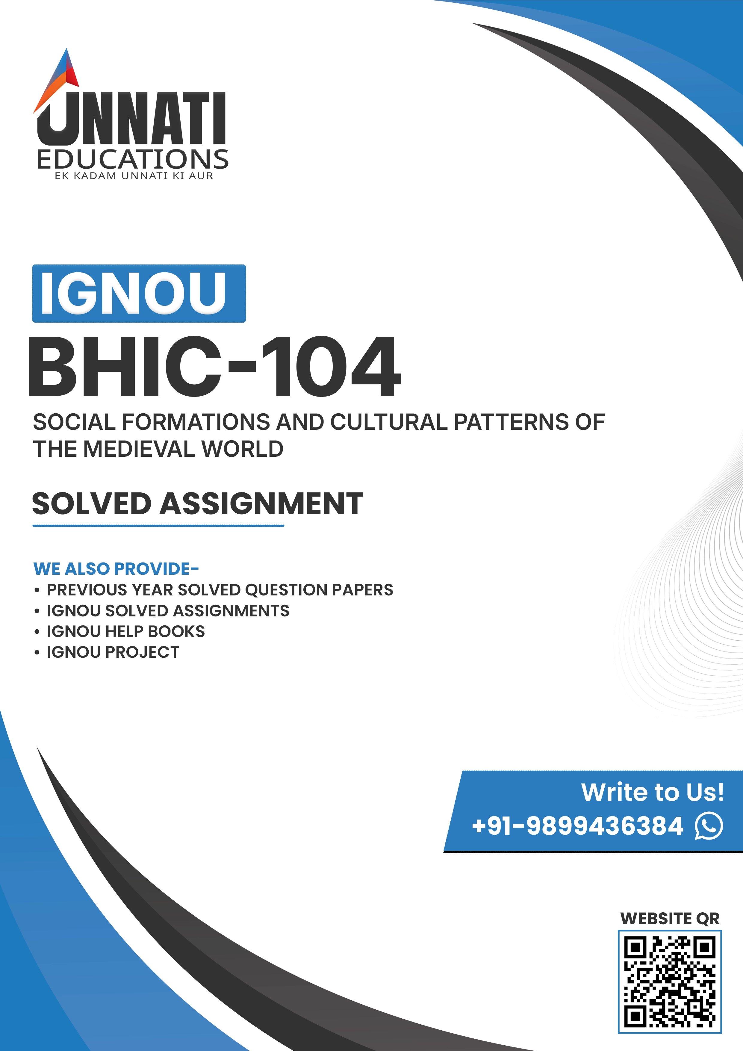 BHIC 104 Social Formations and Cultural Patterns of the Medieval World Solved Assignment 2025-26 for students enrolled in IGNOU's History of India - II. This assignment focuses on the key aspects of India's political structure, Roman influences, and the cultural patterns during the medieval world. The assignment includes detailed solutions for a comprehensive understanding of the topics, prepared according to the IGNOU guidelines.