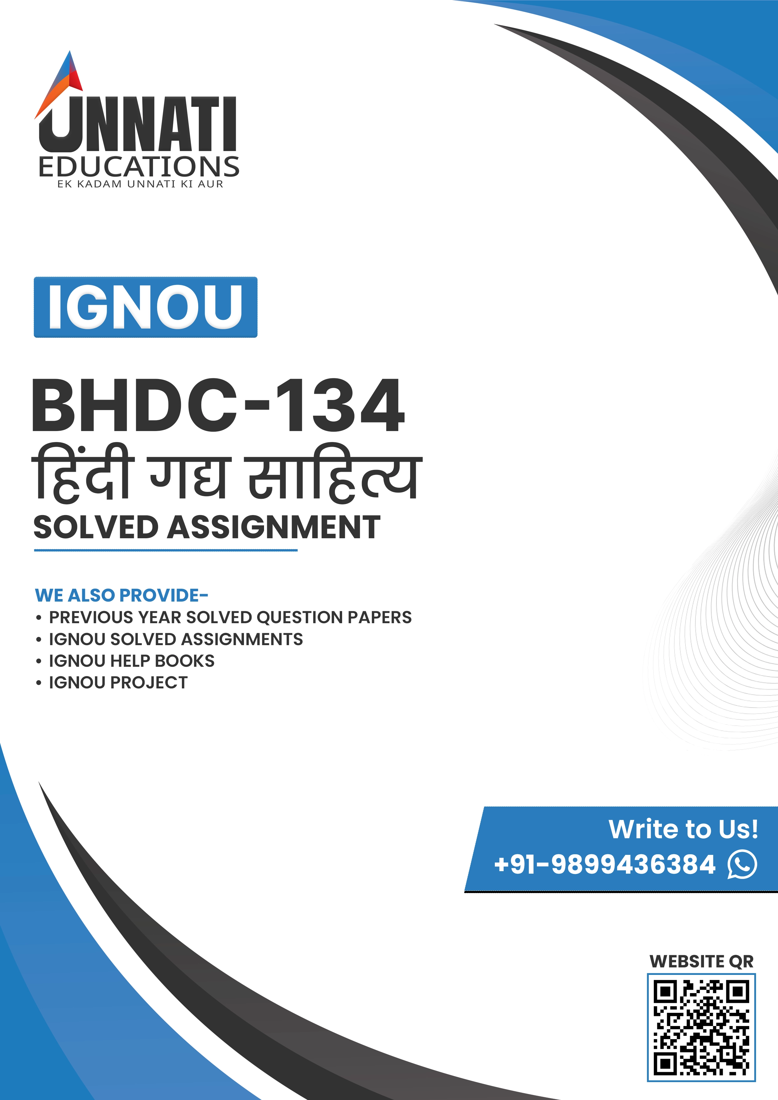 BHDC 134 हिन्दी गद्य साहित्य Solved Assignment 2025-26 is specially prepared for IGNOU students who want clear, structured, and exam-oriented answers. This course covers the development of Hindi prose, major genres like novel, short story, and essay, and important writers such as Premchand and Hazari Prasad Dwivedi. Our solutions are written in simple Hindi, properly formatted, and strictly based on the latest IGNOU guidelines so that you can confidently submit your assignment and score high marks without confusion.