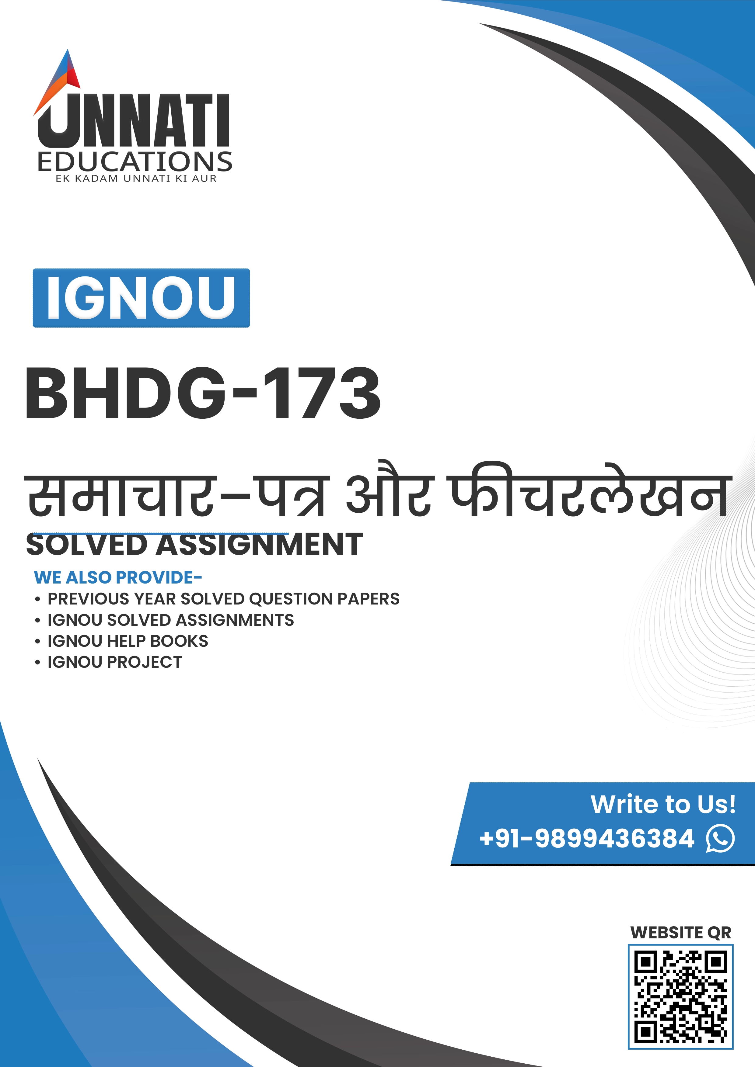 The BHDG 173 assignment carries 100 marks. It is compulsory to submit it before appearing in the term-end examination. If you fail to submit the assignment on time, you may not be allowed to sit for exams. So timely submission is very important.