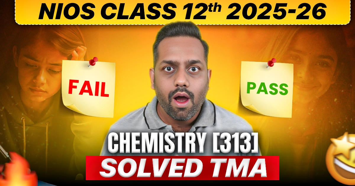 NIOS Chemistry (313) TMA for the 2025-26 exam carries 20 %. It must be submitted before 31st January, 2025 or before 31st July, 2025. The questions must be answered in 40-60 words. Here is the complete solution for Chemistry TMA 2025 – 26, including the syllabus, weightage rules, and submission guidelines.