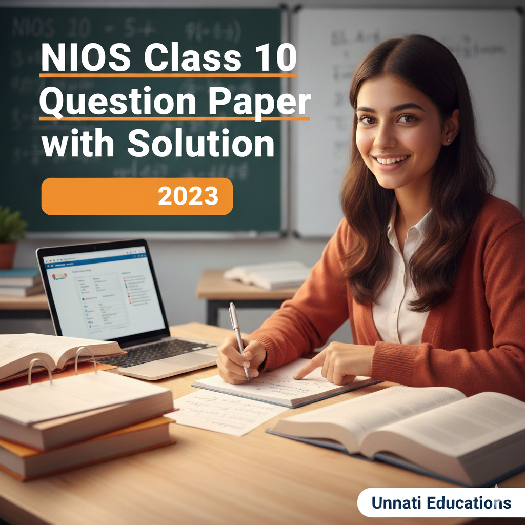 The NIOS Class 10 Question Paper with Solution 2023 should be a part of your toolkit when preparing for board exams. You can see what questions were asked, how they were arranged, how long you should take, and the solutions. You can gain confidence and clarity by obtaining the full 2023 solutions to the NIOS Class 10 question paper. You will benefit in two ways: first, you’ll familiarise yourselves with the exam format, and second, you’ll learn how to present your answers. This type of previous year question papers and answer keys is crucial for those who study through NIOS channels. Combining the NIOS 2023 Class 10 Question paper with expert guidance, practice, and follow-up will give you a better chance to do well in your exams. Unnati Education NIOS can help. They provide past-year papers and guidance, coaching, and solutions aligned with the NIOS format. Your preparation will be more efficient and focused if you have the right paper, along with structured support.