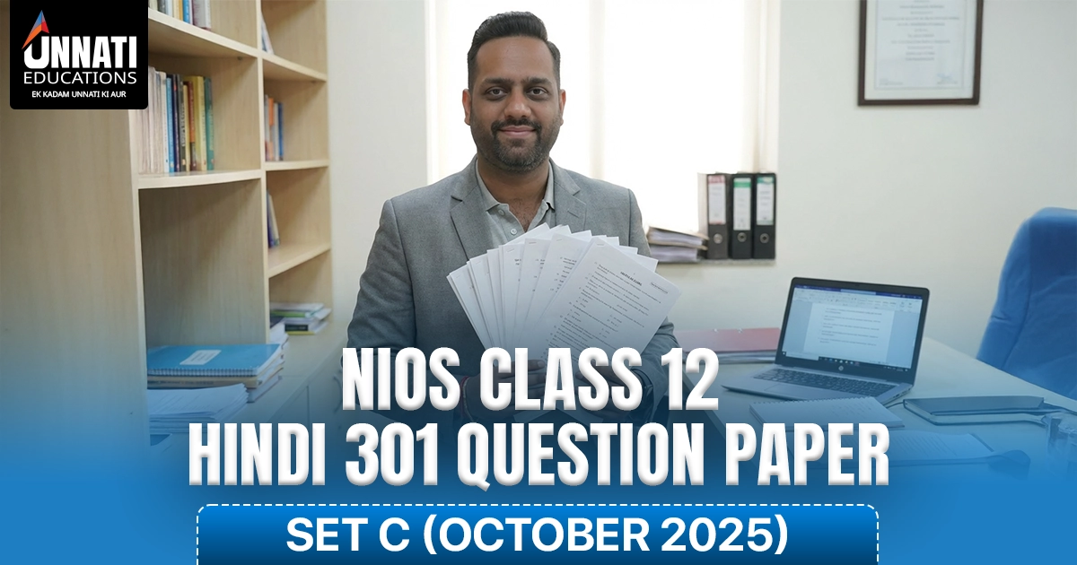 The NIOS Class 12 Hindi 301 Question Paper (Set C) October 2025 is an important reference point for students preparing for upcoming NIOS exams in 2026. This paper clearly reflects how NIOS frames questions, balances literature and grammar, and tests real understanding instead of rote learning. By carefully analysing the attached question paper, this guide explains the structure, topic-wise weightage, and preparation strategy in simple words so that every learner can benefit.