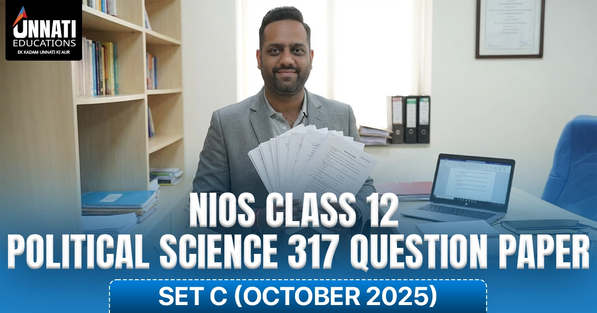 The NIOS Class 12 Political Science 317 Question Paper (Set C) of October 2025 clearly reflects NIOS’s focus on conceptual understanding, clarity of political ideas, and structured answer writing. The paper is syllabus-based, balanced between Indian and global politics, and designed to test both knowledge and explanation skills. This detailed analysis explains the paper structure, section-wise pattern, topic coverage, and preparation direction for students appearing in the 2026 examination.