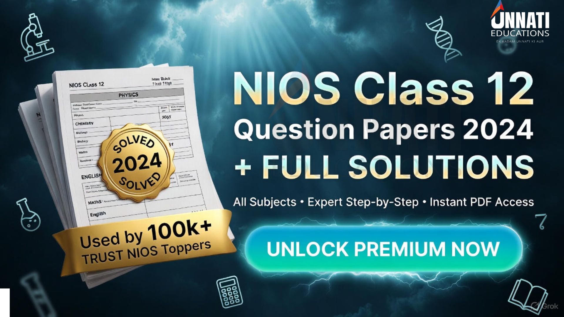 Consistent practice with NIOS Class 12 question papers (2024) will sharpen your concepts and boost your confidence. Start today — download subject-wise PDFs, check your performance, and connect with Unnati Educations for expert guidance.